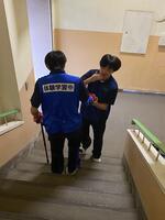 その他にも、「ステッキ」や「重りサンダル」などを着用し、校内を回りました。