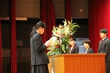 中川教頭先生からの激励の後、校旗授与を剣道部主将の川畑さん、選手宣誓の言葉を空手道部主将の釜さんが行いました。