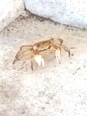 校内で、たまにというかよく見かけるカニさんです。一体どこからやってくるのでしょうね。