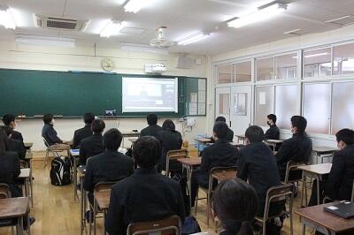 12月23日、二学期の表彰式と終業式がリモートで行われました。表彰式では、農業鑑定競技の3年林業科の村上さんや空手道部の新人大会優勝など、たくさんの表彰が行われました。