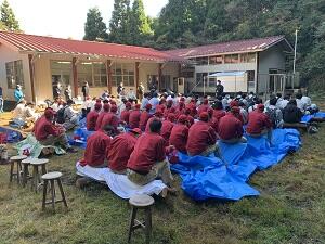鏡山演習林において、八代農業高校泉分校グリーンライフ科、南稜高校総合農業科、芦北高校林業科の2年生が集まって3校合同でシカ被害に関する学習会を行いました。これら3つの学校は、熊本県でも南に位置する学校で、林業について学んでいます。増えているシカ被害の状況をみんなで考えました。