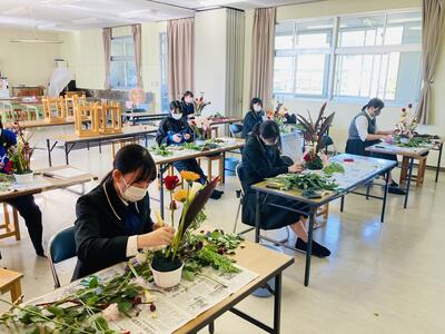 11/19の高校生フラワーアレンジメントコンテストに向けた練習として、