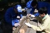 生徒はどんぐりを持つ仲間を総称してブナ科ということや、ムクロジについて、クリとクヌギの違い、松の特徴や樹木の名前の由来など実際に樹木に触れて学びました。