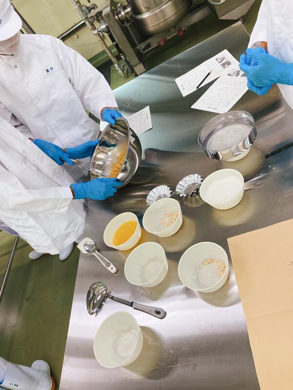 農業科1年「食品製造」の授業で、初めて実習を行い『マドレーヌ』を作りました。