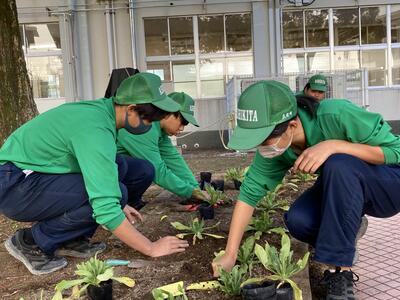 林業科3年生の課題研究「ホタル班」は学校横の乙千屋川の観察を定期的に行っています。この日は、なぜか川が濁っており、ホタルの餌となるカワニナの数も減っていました。上流に登ってみると、砂防ダムの工事をしていました。先日の台風による大雨で土砂が流れ込んだのかもしれません。工事自体は仕方ありませんが、このように上流の環境が河川環境に影響するということを再認識したようです。