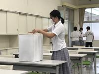 急遽、リモートによる演説になりましたが、全校生徒みなさんの協力のもと、スムーズに投票まで終えることができました。