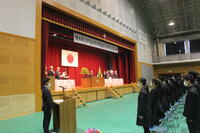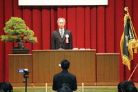 学校長式辞では、本校校長で、本校出身でもある丁薫校長から、式辞が述べられました。百年に及ぶ本校の歴史を、屏風絵のように振り返りながら、「国内約370の農業関係高校の中で、『農業科』という学科は42校、『林業科』は全国にわずか3校。その中で、本校が発足当時の『農業科』『林業科』を存続し続けていることは、地域に認められてきたということでもあります。」と力強く述べられました。