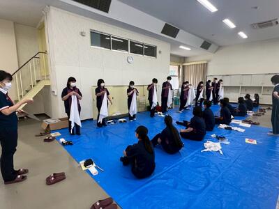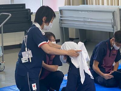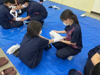 病気やケガをした人に対し、正しく救助して医師に渡すまでの救急処置の知識や技術を学びました。