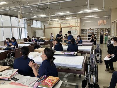 血圧測定や車いす体験、入浴介助の様子を見ることができました