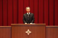 校長先生からは、本校の校訓である「敬愛(周りの人を敬い愛する心)」「勤勉(精神を集中して一心に勤める姿勢)」「創造(一から創りあげていく力)」を胸に刻むことが自身の基軸となりブレない力になる。夢を実現するには小さな歩みの積み重ねが大切である。予想しないことに不安がるのではなく、前向きにとらえる考えを持ってほしいといったことを式辞で述べられました。