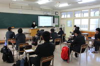 本来は、全校生徒対象なのですが、コロナウイルス感染症リスクレベル5に引き上げられたため、3年生のみとなりました。