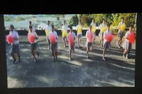 大正琴の演奏や、新体操部の全国大会での中継映像、野球部のメモリアルムービーが放映されました。