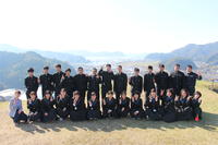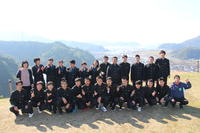 しかし、これで終わりではありません。今回は、しろやまスカイドームまで来ましたので、全校生徒全員で芦北町の歴史的遺産である佐敷城跡に登り、クラスごとに記念撮影を行ないました。東には、遠くは不知火海の風景から佐敷駅など町の風景が見渡せました。西には、芦北高校の校舎や佐敷川の流れる景色が望めました。