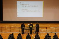 学科では農業クラブや林業、福祉の部門で、部活動では女子バレー部や空手部、新体操部、教科では俳句や短歌、書道などでそれぞれ表彰者が読み上げられました。また、芦校祭での各部門(パンフレット・弁論・壁新聞)での表彰や、防災に関する作文の表彰も読み上げられました。