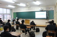 1年生は、各教室で担任の先生からスライドを元に防災に関する学習を行ないました。