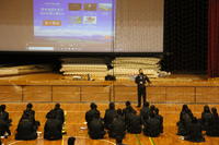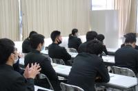 消費者トラブルの防止のために知っておきたい決まり事や、SNS上等での注意点など詳しくお話しいただきました。生徒のみなさんも、メモを取りながら、真剣に講話を聞いていました。