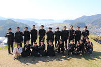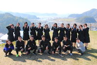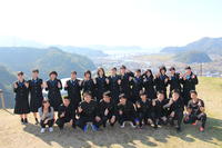 しかし、これで終わりではありません。今回は、しろやまスカイドームまで来ましたので、全校生徒全員で芦北町の歴史的遺産である佐敷城跡に登り、クラスごとに記念撮影を行ないました。東には、遠くは不知火海の風景から佐敷駅など町の風景が見渡せました。西には、芦北高校の校舎や佐敷川の流れる景色が望めました。