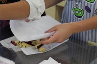 道具の片付けを終えて、支援物資としていただいていた水やジュースと育友会からパンの配付がありました。