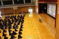 2年生は、体育館で防災に関するDVDを視聴しました。