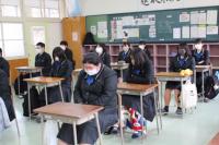 3年生も、それぞれのクラスで担任の先生が防災に関するスライドを元に説明をされていました。
