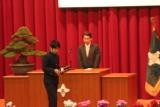 その後、3年生を代表して3年福祉科の大松君より、同窓会入会の言葉と記念品贈呈が行われました。