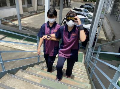 ゴーグルを装着し、視野の狭さを体験した生徒は「こんなに見えにくいんだ?!」と驚いている様子でした。