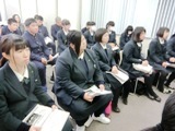 修学旅行学科別研修として、日本介護福祉士会」の本部を訪問し、副会長の松下様に講話をしていただきました。日本の介護を取りまく環境(介護人材の不足)として、要介護者数と介護職員数の推移について学習し、その中で、高齢者の増加により、2020年には20万人の介護人材が必要となると予想されていることを知りました。100人に3人・・・つまり33.3人に1人が介護職を担う状況になります(総務省統計)。今後の日本を支えていく人材になるよう、介護に関する知識と技術を高めると共に、自己の成長に努めたいと思う実りある研修となりました。最後に、生徒代表として山内君進路実現と介護福祉士国家試験合格」に向けての決意とお礼の言葉を述べました。