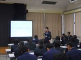 まず、はじめに教頭先生の成人代表挨拶、農業クラブ会長大崎君(3年農業科)の挨拶、この1年間の