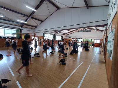 剣道場は試合できるスペースが2面確保でき、広々としており、風通しもよく、少し肌寒いくらいです。竹刀や防具の置き方もようやく慣れてきたところですかね。