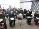 修学旅行学科別研修として、「日本介護福祉士会」の本部を訪問し、副会長の松下様に講話をしていただきました。日本の介護を取りまく環境(介護人材の不足)として、要介護者数と介護職員数の推移について学習し、その中で、高齢者の増加により、2020年には20万人の介護人材が必要となると予想されていることを知りました。100人に3人・・・つまり33.3人に1人が介護職を担う状況になります(総務省統計)。今後の日本を支えていく人材になるよう、介護に関する知識と技術を高めると共に、自己の成長に努めたいと思う実りある研修となりました。最後に、生徒代表として山内君が「進路実現と介護福祉士国家試験合格」に向けての決意とお礼の言葉を述べました。