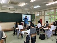 毎年、本校では水俣市社会福祉事業団主催のもと、各学年1回ずつ、計3回、介護研修会を開いていただいています。1、2年生は北海道からリモートで実施し、3年生には、北海道から大堀先生に来ていただき、生の講義を受けさせていただいています。