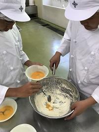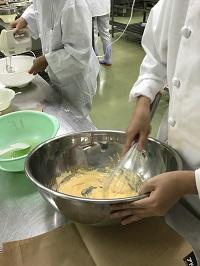 農業科1年生の「食品製造」の授業で小麦粉の加工、卵の気泡性について学習しています。9月9日の実習は『シフォンケーキ』でした。