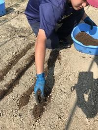 本日の実習は播種(はしゅ:種をまくこと)を行ないました。10月下旬の苗収穫まで毎日管理します