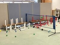 今回の交流(ゲーム)は筒倒しゲームですボールを当てて筒を倒します。筒の中にはポイントになるボールが入っていますので、たくさん倒したからといって勝ちになるわけではありません。どの筒にどれだけポイントがあるかもわからないので、とにかくたくさん倒すことに集中しました。芦高生は支援学校の生徒がボールを投げられるようボールを手渡したり、ボール投げマシーンのお手伝いをしました