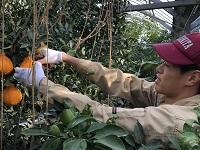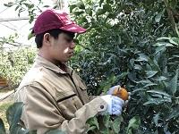 先月末から農業科の果樹専攻生は不知火(デコポン)の「枝吊り・玉吊り」を行っています不知火が大きくなると重さで枝が折れてしまうことがあるので、それを防ぐために麻紐で枝や果実を吊っています。今日は2年生が枝吊り・玉吊りを行いました