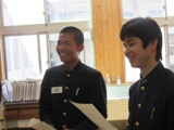 また、生徒を代表してバドミントン部、男子主将 生島君(3年農業科)、女子主将 椎葉さん(3年福祉科)が