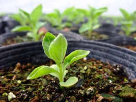 葉が展開したら、3号のポリポットに鉢上げします。細くてか弱い苗を傷つけないよう一つずつ丁寧に行います。そしてそのまま春まで大切に育苗します。