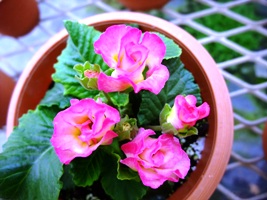 今年芦高で栽培しているポリアンサは、バラの花のように花びらが重なって咲く八重咲きの品種で、その小さくも華やかな美しさから人気があります。