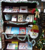 図書館でサイン色紙を飾っています。クリスマス特集も行っていますので、興味がある人はぜひ立ち寄ってみてください。