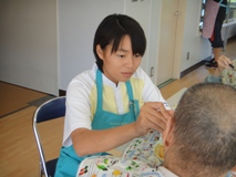 10月26日(日)社会教育センターにおいて、芦北町健康フェアが開催され、芦北高校の福祉科の生徒が介護技術を披露したり、高齢者・障がい者疑似体験コーナーを運営したりしました。食の安全や骨密度を測定をするコーナー等、健康に関する様々なコーナーがあり、健康意識の向上につながった一日でした。