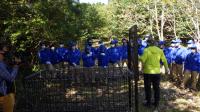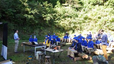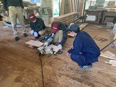 講師の先生方のご指導のもと、「わな」の柵を組み立てる生徒達。