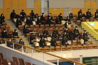 (2階席から3年生の先輩方を見守る在校生)