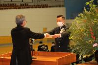 校長式辞では、丁薫校長が卒業生に向けてメッセージを話されました。豪雨災害から果敢に復興につとめる卒業生の姿や、各学科での取り組みについての奮闘をたたえられました。また、「人間は自分が考えているような人間になる」ために、辛抱強く、失敗にめげず、諦めずに、道を切り開いていってほしい、と願いを込められました。