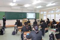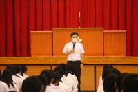 本日は、本校林業科卒業の前島先生が、生徒達に芦北高校同窓会「三太郎会」について話されました。