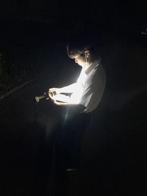 「光る汗 実習中の 木の下で」