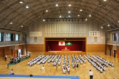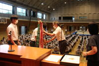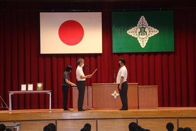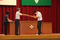 表彰式では、3年生の功績をたたえる様々な部門の表彰が、1、2年生が2階席から見守る中で行なわれました。