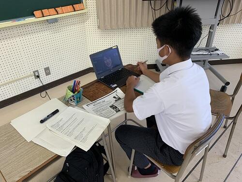 Zoomでのリモートによる遠隔授業の様子。