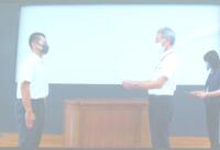 林業科1年生の上村君は夏休みに、海外研修に参加しました。とはいっても、コロナ禍ですので、オンラインによるものです。ただ、その学びは大きかったようで、熊本県産業教育振興会において農業高校の代表として発表しました。(工業、福祉の三人で発表)英語によるスピーチもあったのですが、堂々と発表することができました。