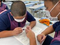 教科書やChromebookを活用し、互いに意見を出し合っています
