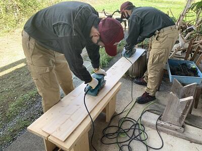 林業科2年生は、二学期になってから木工の実習が続きました。創立百周年の記念式典用の記念品を作るのです。ヒノキ板を使ったバインダーですが、サンドペーパーで光沢が出るまで磨くのです。ニスを塗って完成しました。喜んでいただけると嬉しいです。